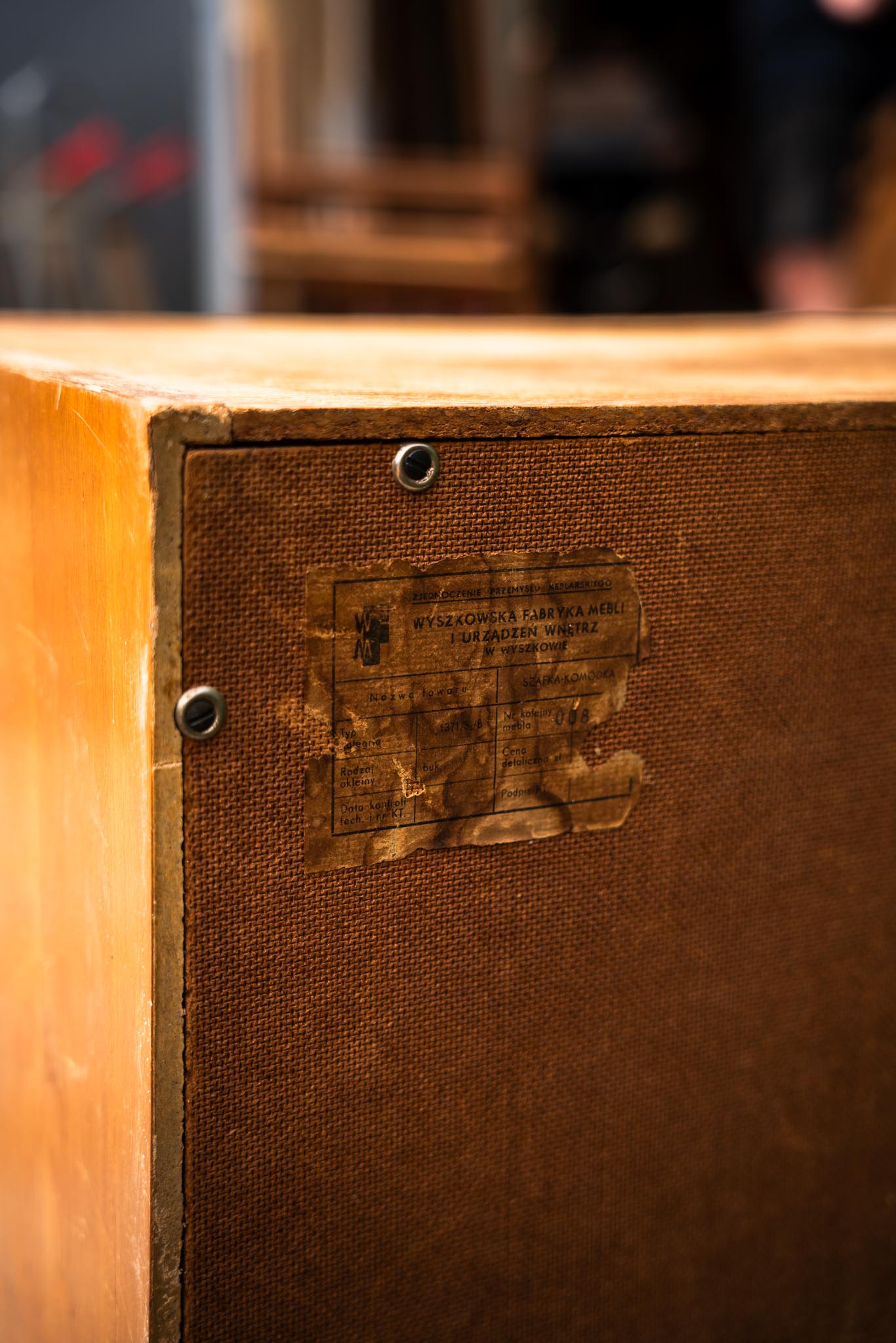 Mebel charakterystyczny dla pokoików nastolatków mebel z lat 60-70′. Jest dosyć zniszczona, dlatego cena wyjściowa jest niewielka. Rzadkie uchwyty są zachowane w niemal idealnym stanie, Zachowana etykieta Wyszkowskiej Fabryki Mebli.