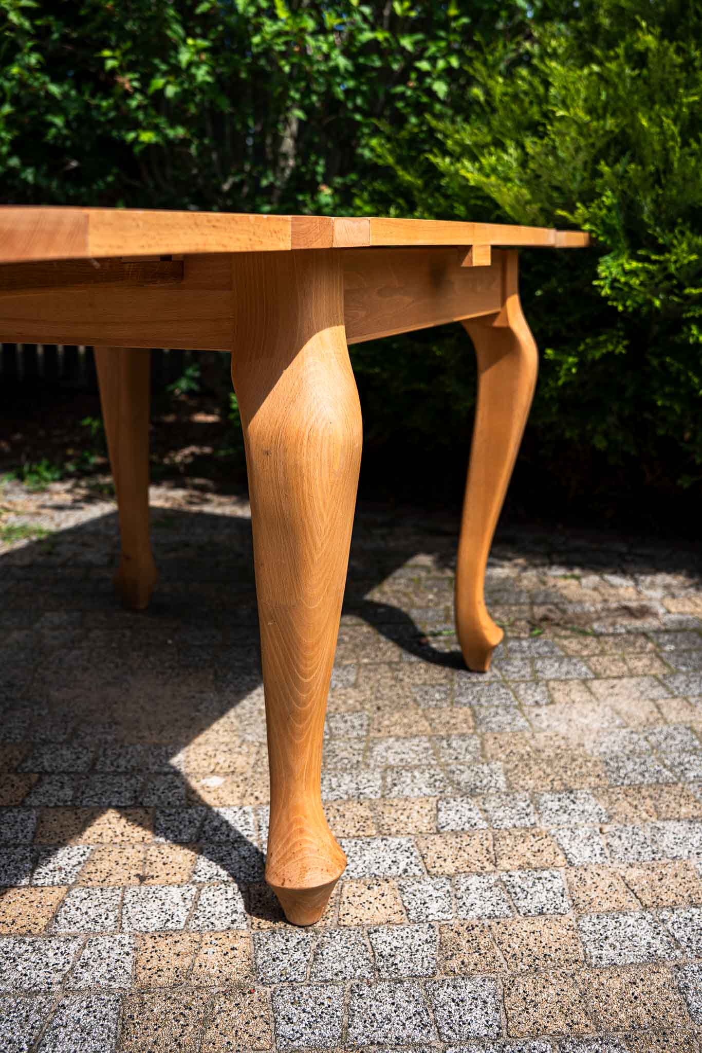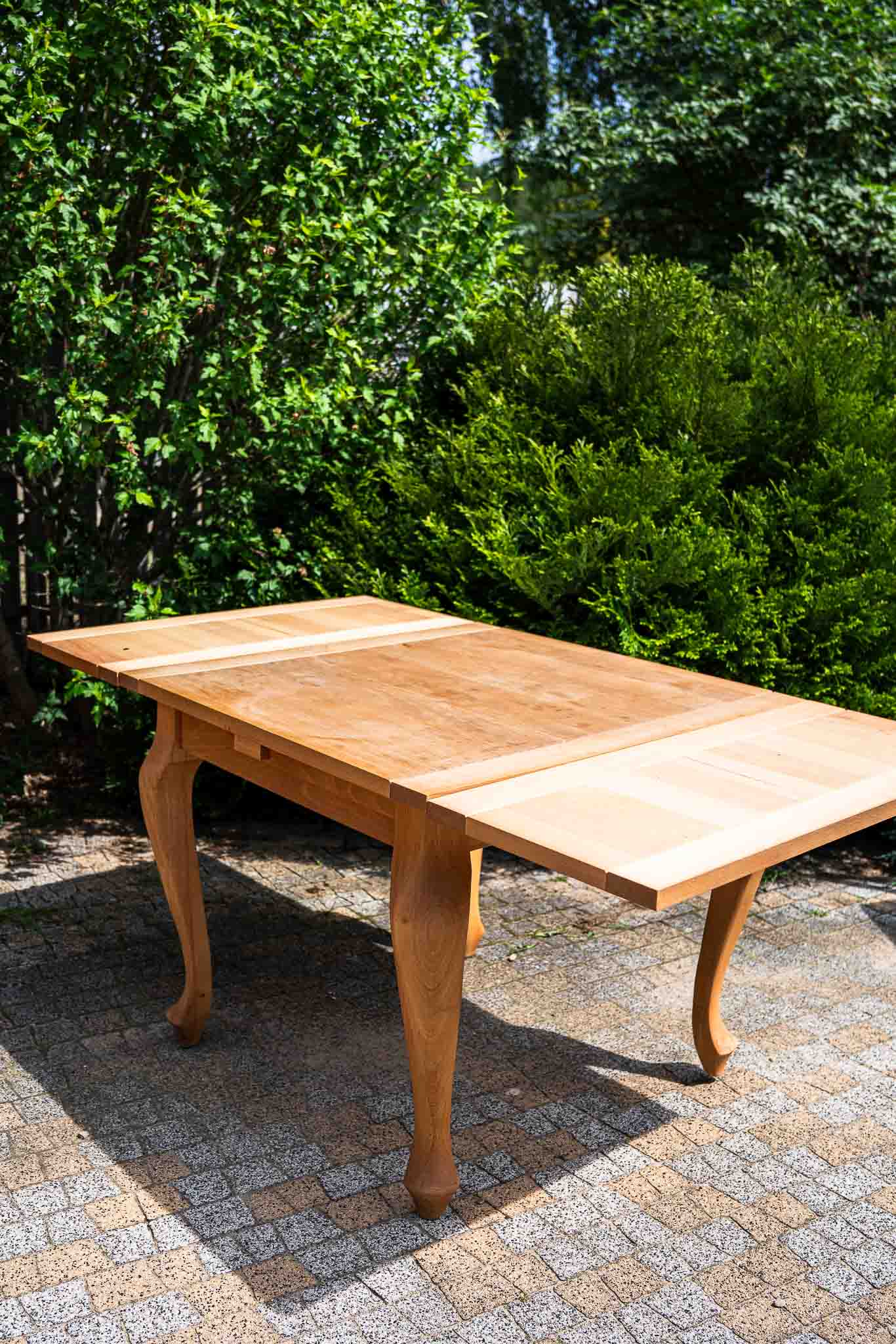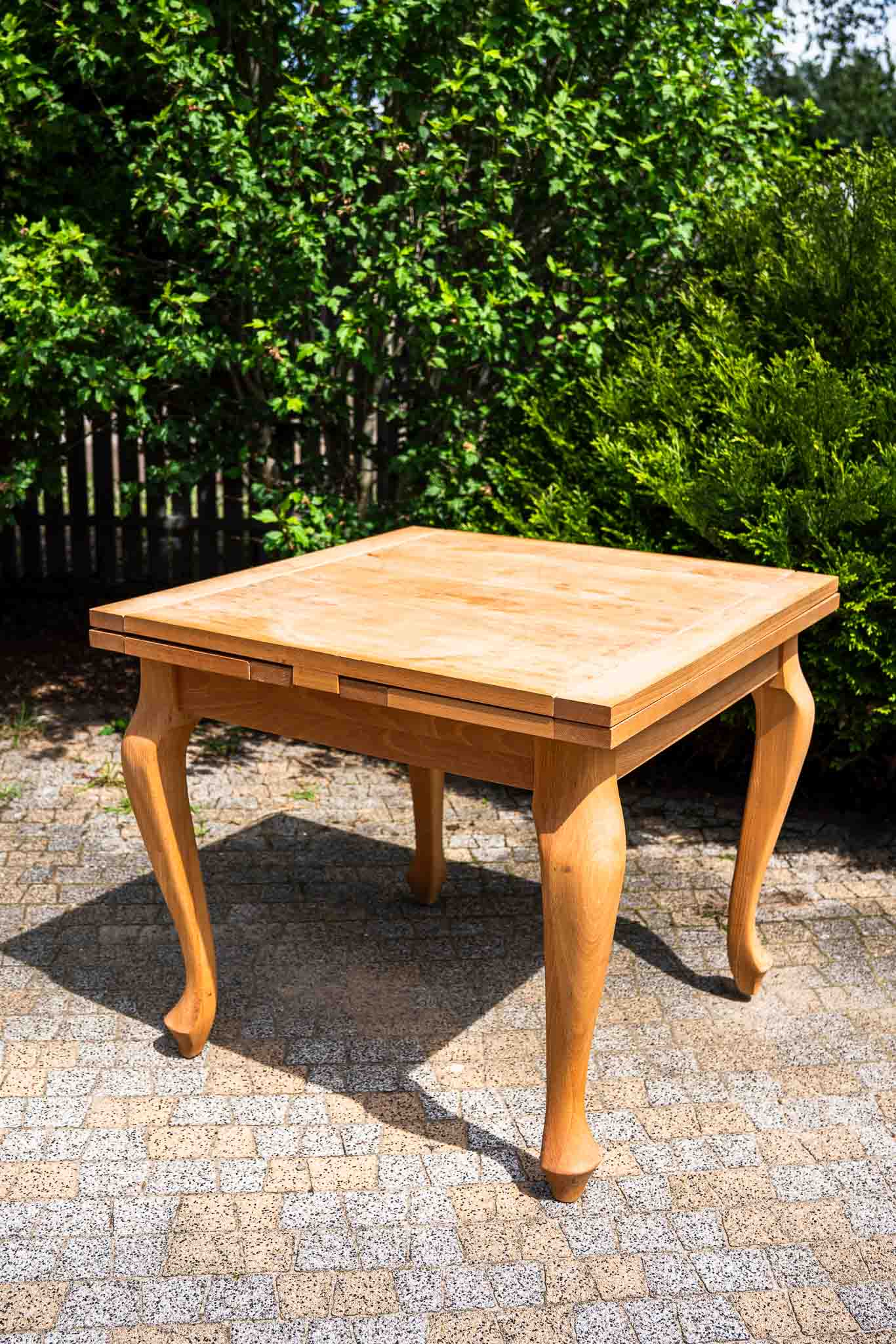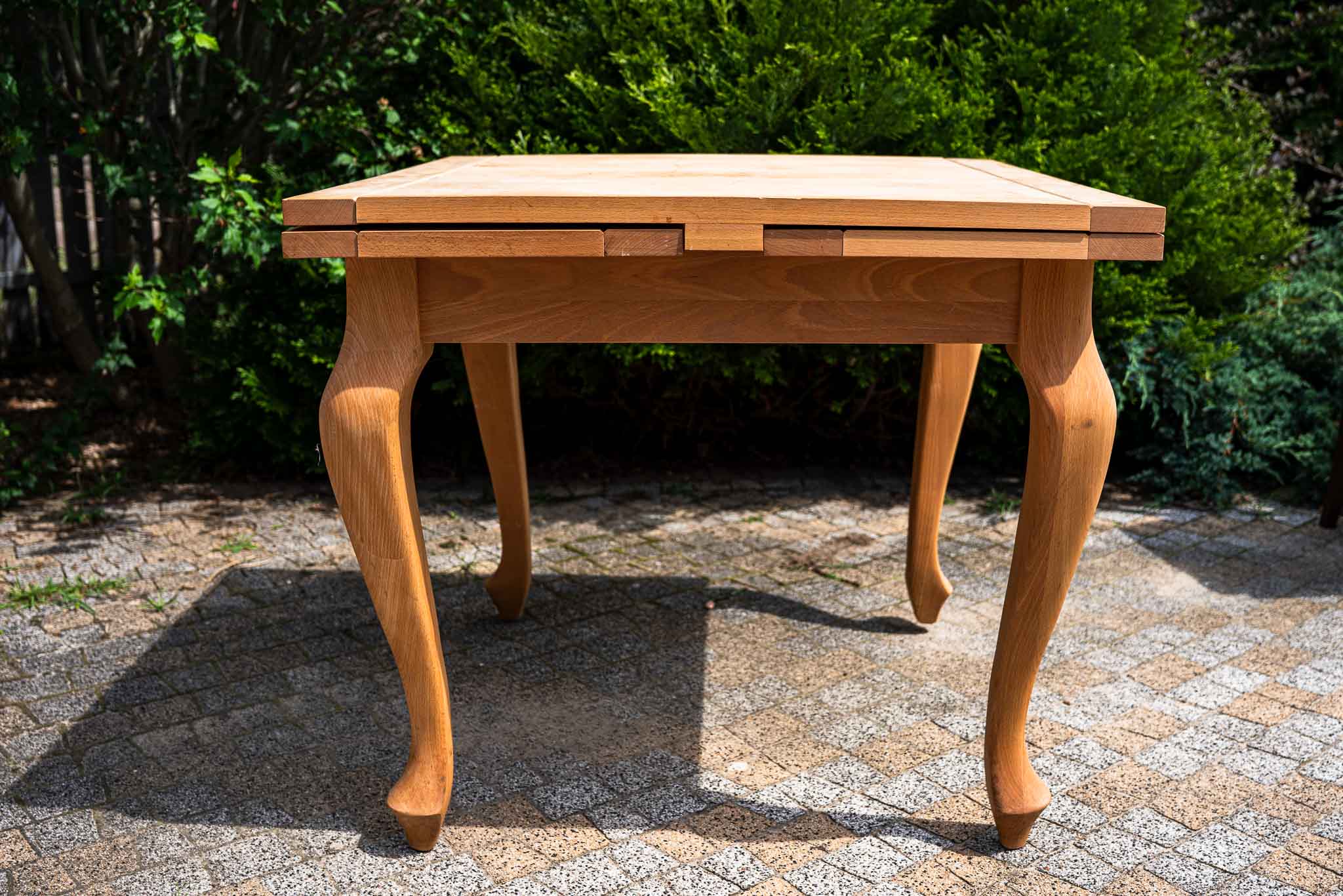 Stół bukowy, rozkładany, wyprodukowany około 2010. Lekkie wypaczenia blatu (widać na zdjeciach).