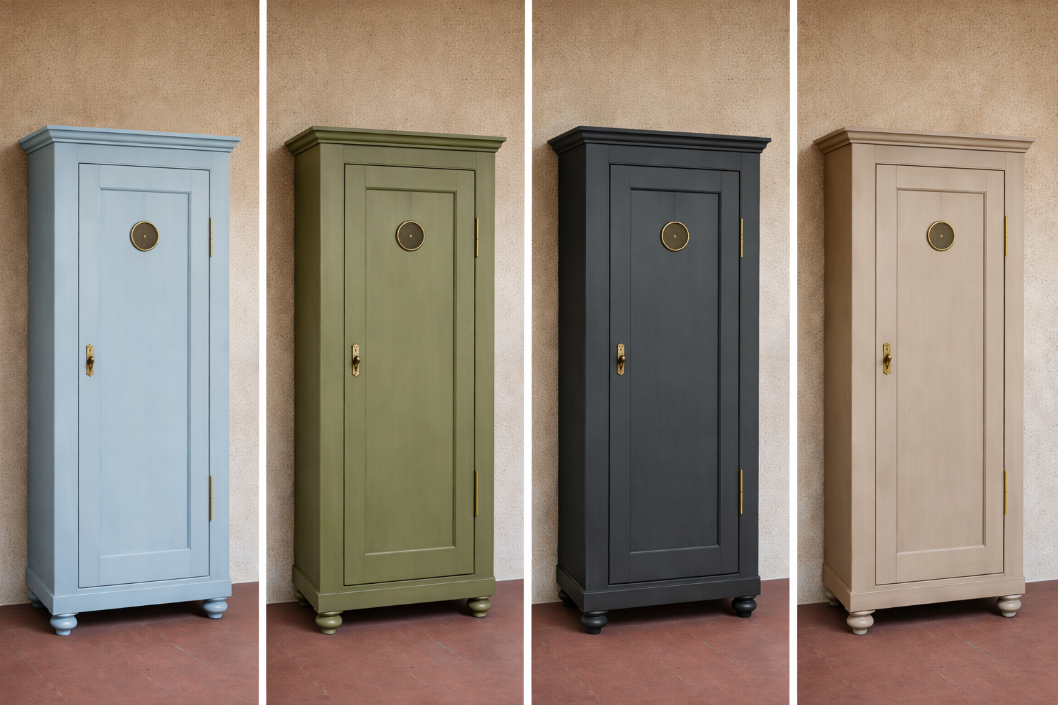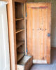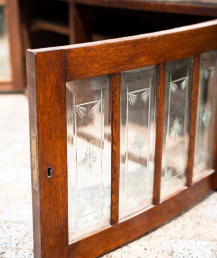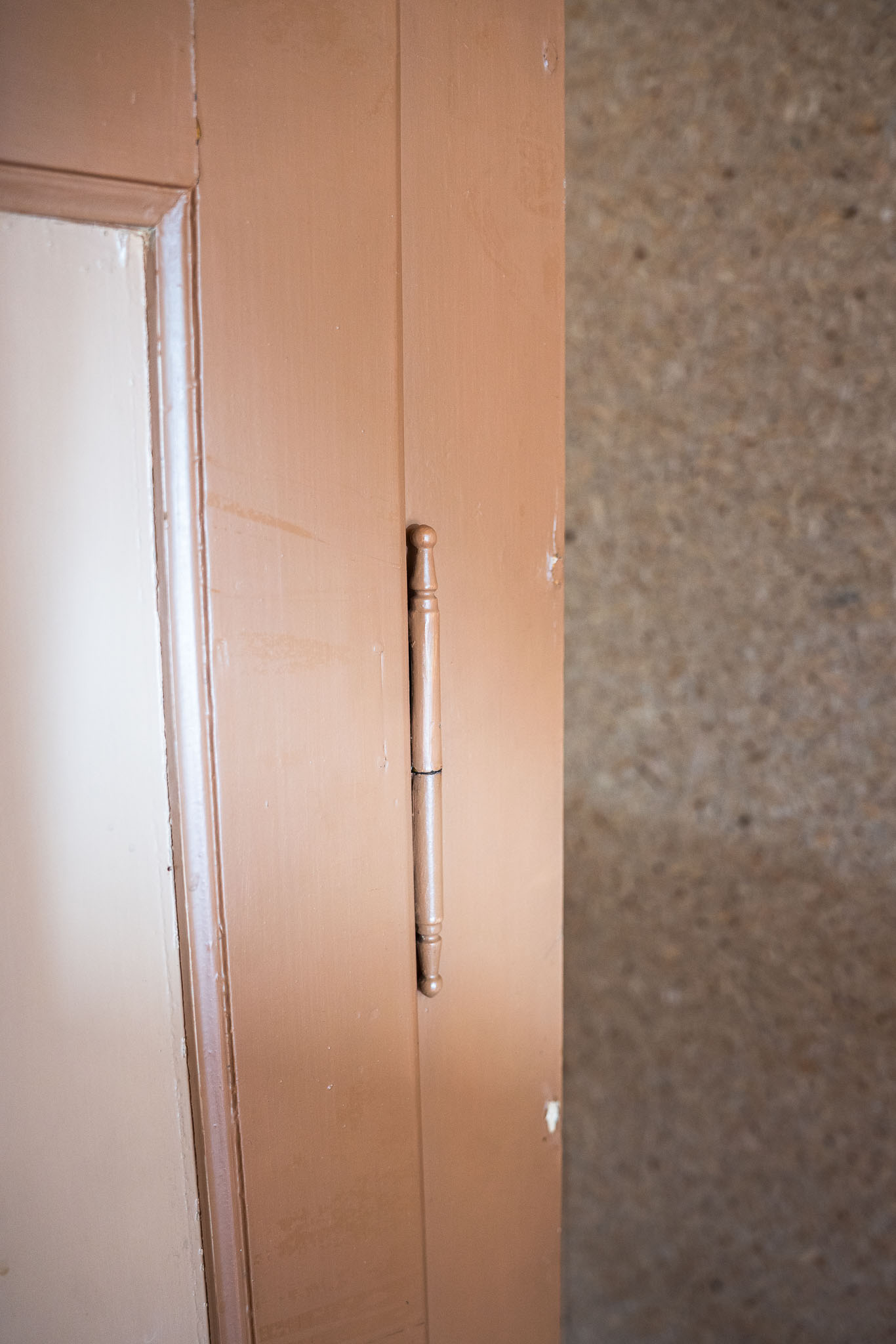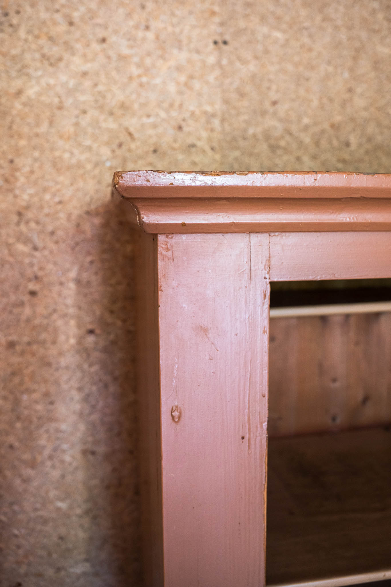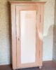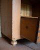 Przedwojenna szafa chlebowa, sosnowa. Po renowacji powinna otrzymać sitko w drzwiach, charakterystyczne dla mebli tego typu. Mebel jest aktualnie w stanie do renowacji. Wnętrze jest surowe, ma szufladę i 4 półki.