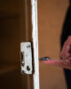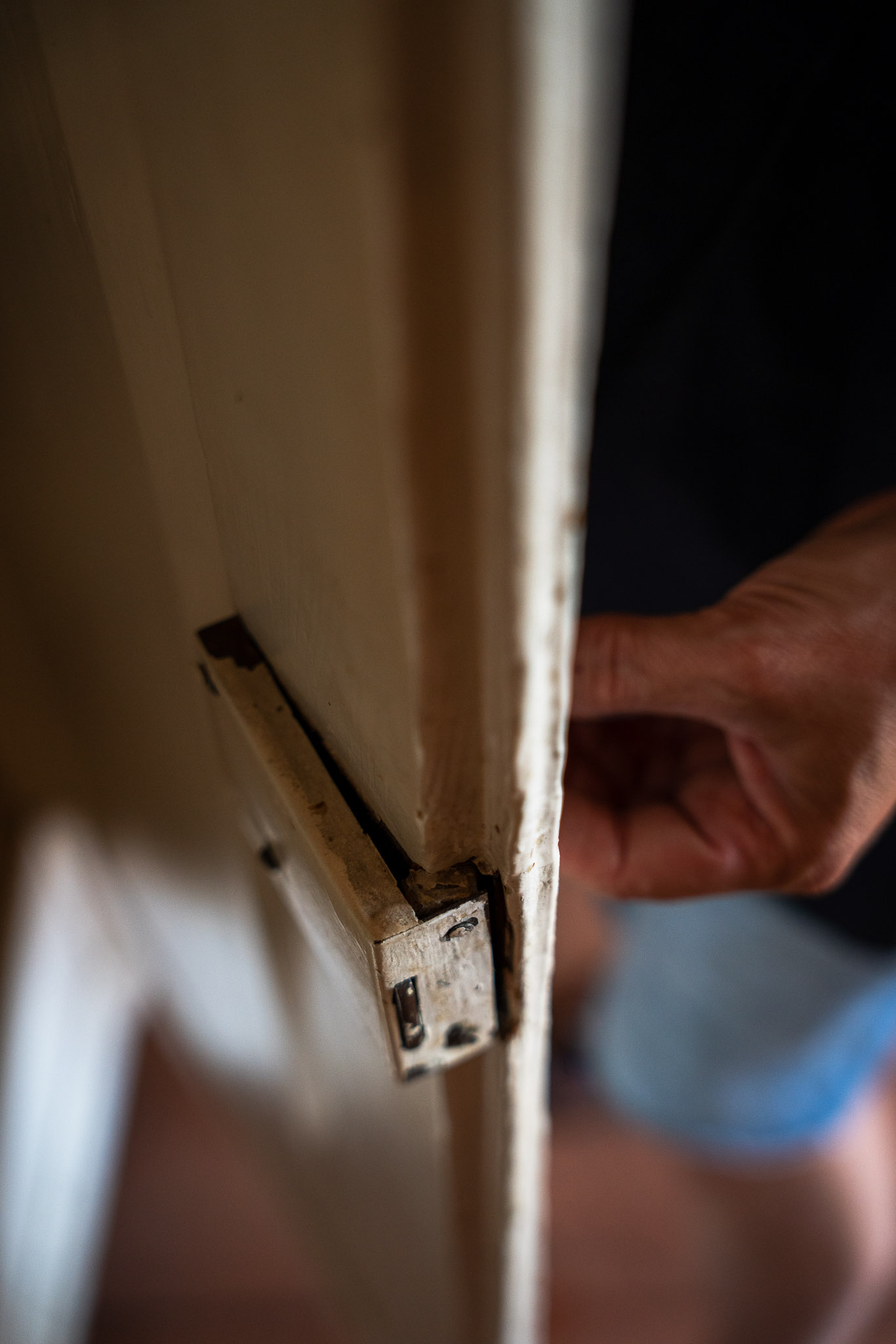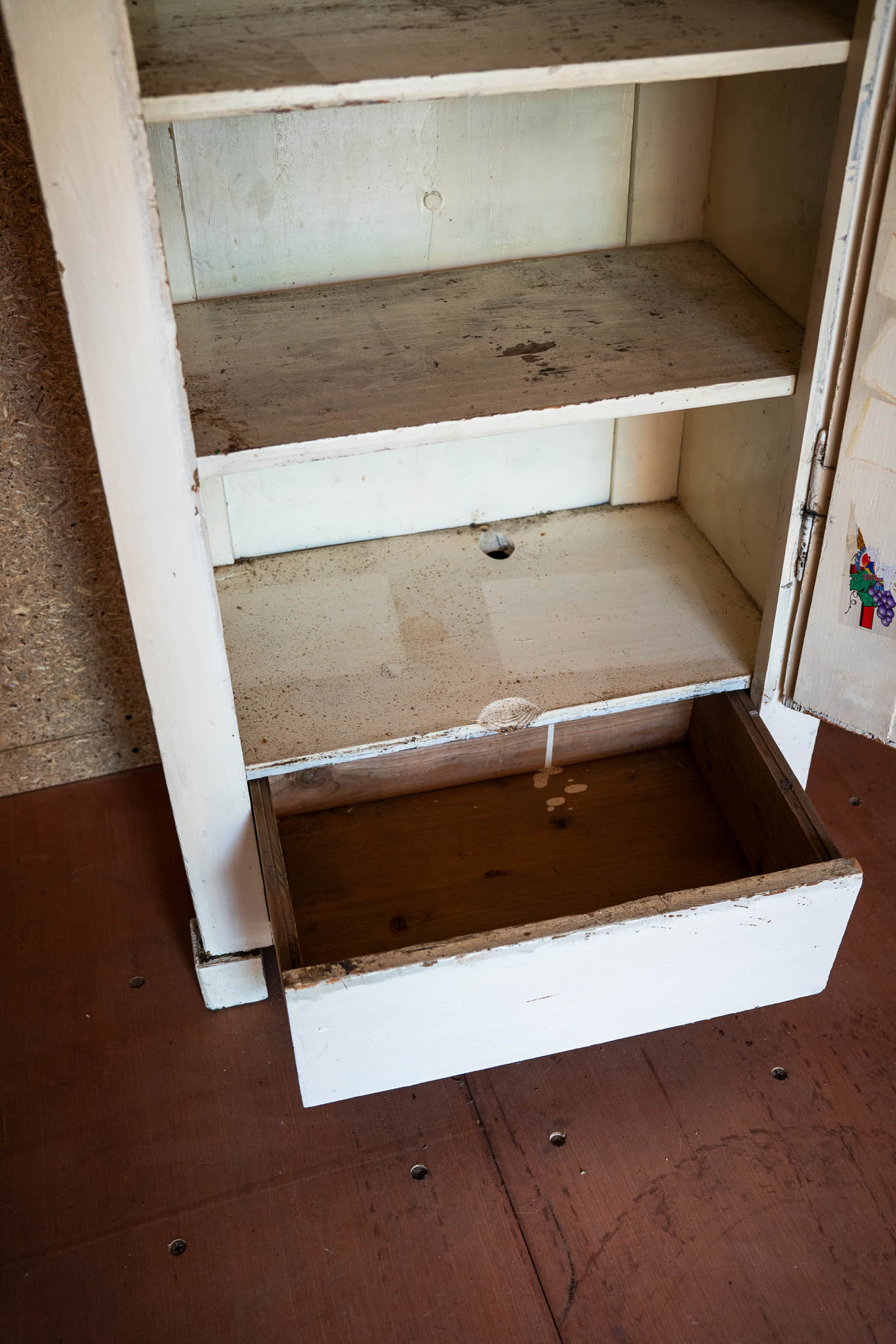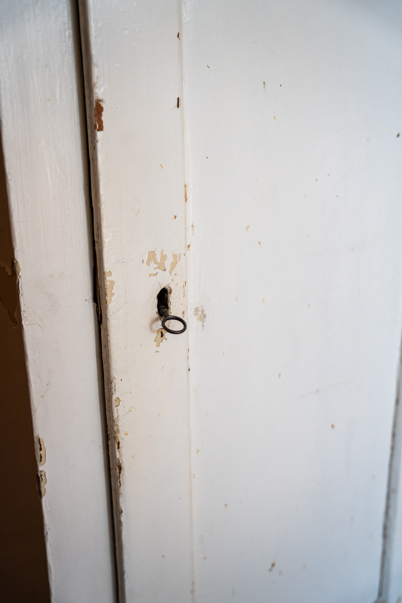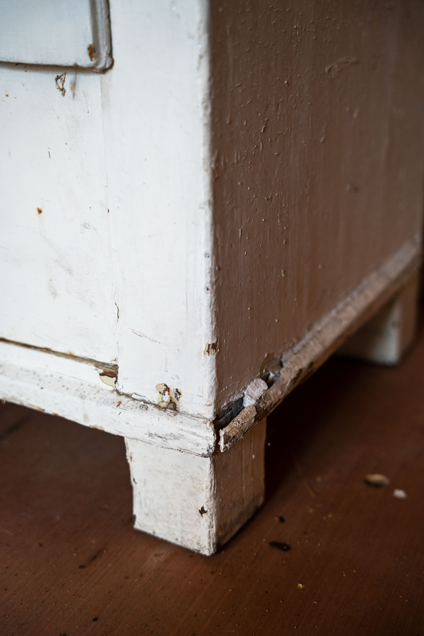 Przedwojenna szafa chlebowa, sosnowa, przyjechała ze Śląska. Po renowacji powinna otrzymać sitko w drzwiach, charakterystyczne dla mebli tego typu. Mebel jest aktualnie w stanie do renowacji. Wnętrze jest surowe, ma szufladę i 4 półki. Zachowanw oryginalne okucia.